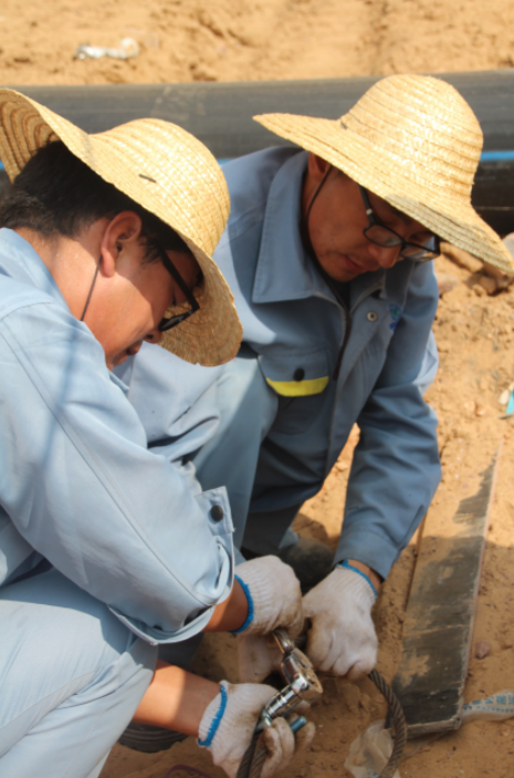 ▲在烈日炙烤下,對(duì)填埋場(chǎng)的管道進(jìn)行加固。衣服濕了一遍又一遍,但是他們依然沒有停止手頭的工作。